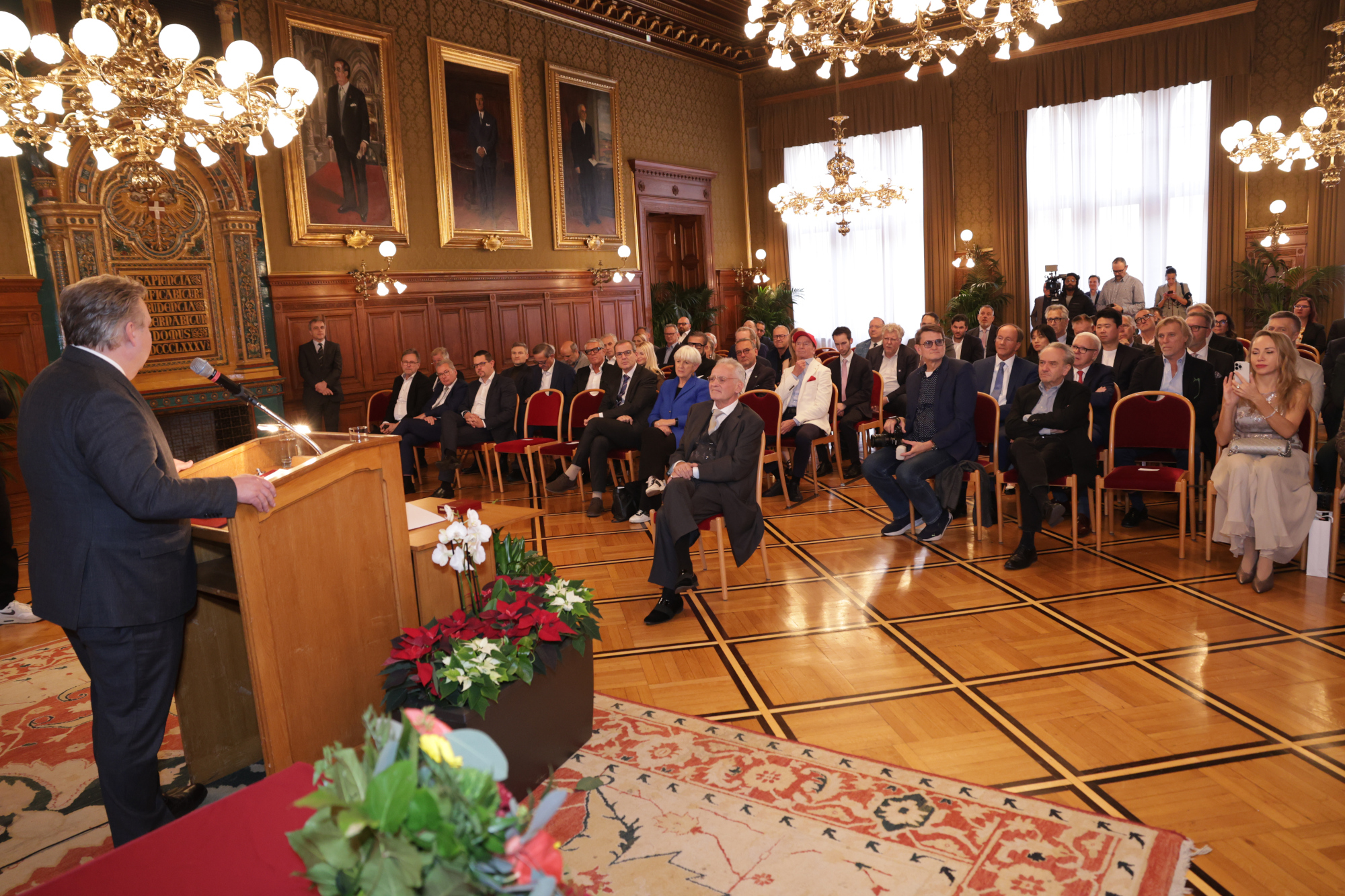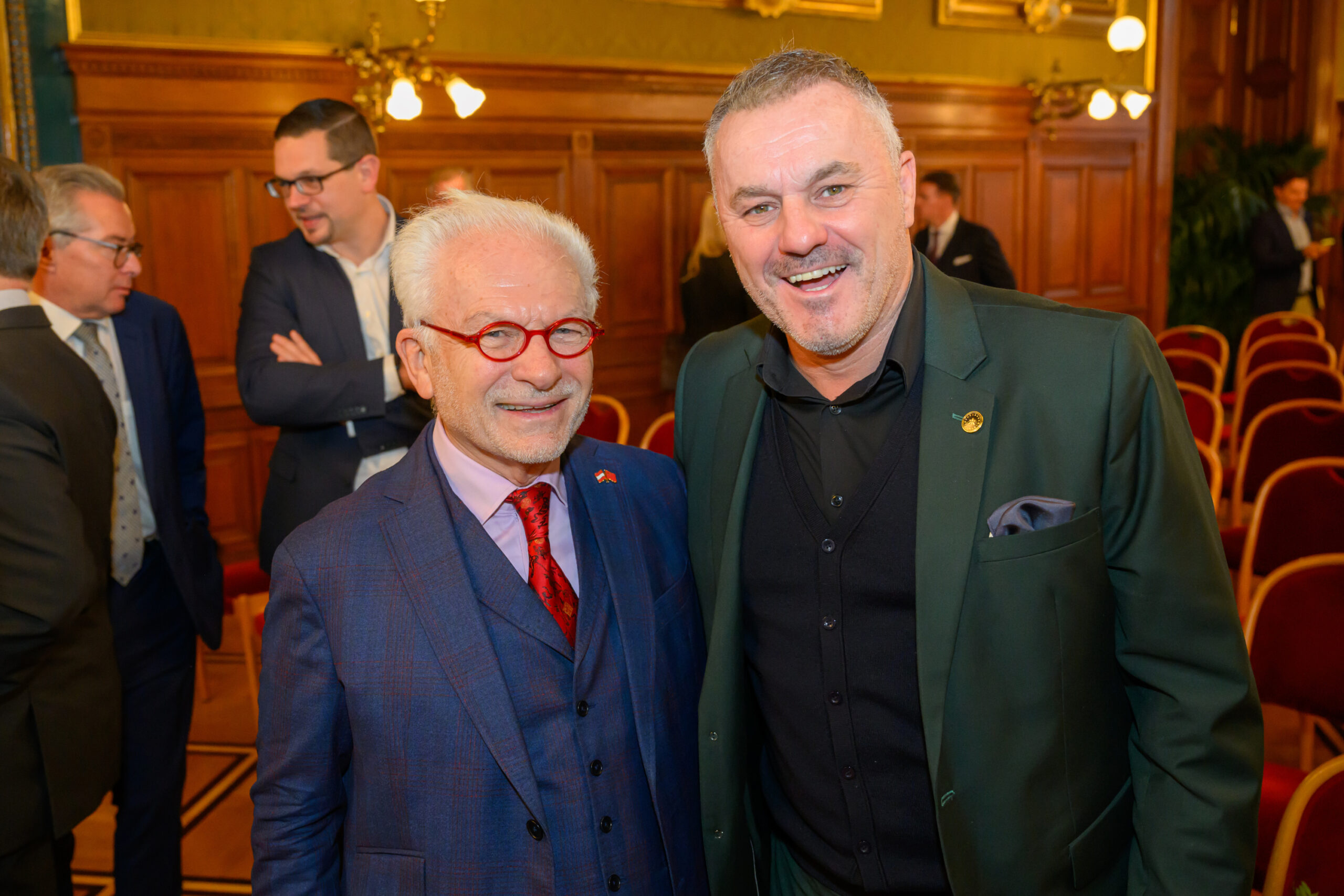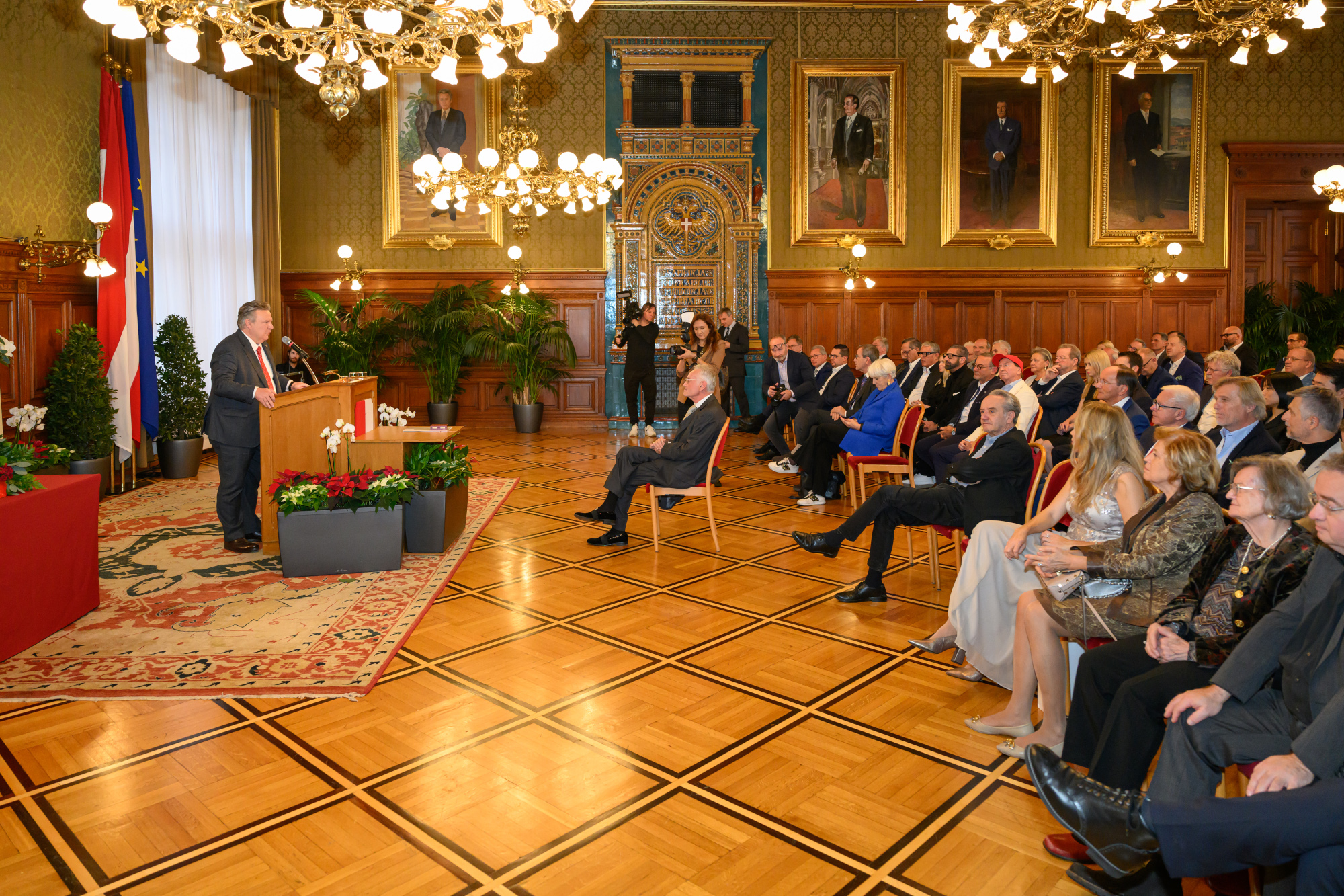 Eine Hundertschaft von Prominenten, Netzwerkern, Managern, Wegbegleitern, Freunden und auch ein paar Familienangehörige trafen sich am 4. Dezember im Stadtsenatssitzungssaal, um Verleger Christian W. Mucha (70) zu ehren. Wiens Bürgermeister Dr. Michael Ludwig strich den feinen Aufstieg Muchas vom Gemeindebaubewohner zum Verlagszampano und Medienmultitalent hervor. Nicht ohne dessen Verhandlungsgeschick einerseits zu loben und andererseits zu versuchen, die Spezialität des Hauses Mucha, das Gegengeschäft, mit einem Erklärungsversuch transparent zu machen.