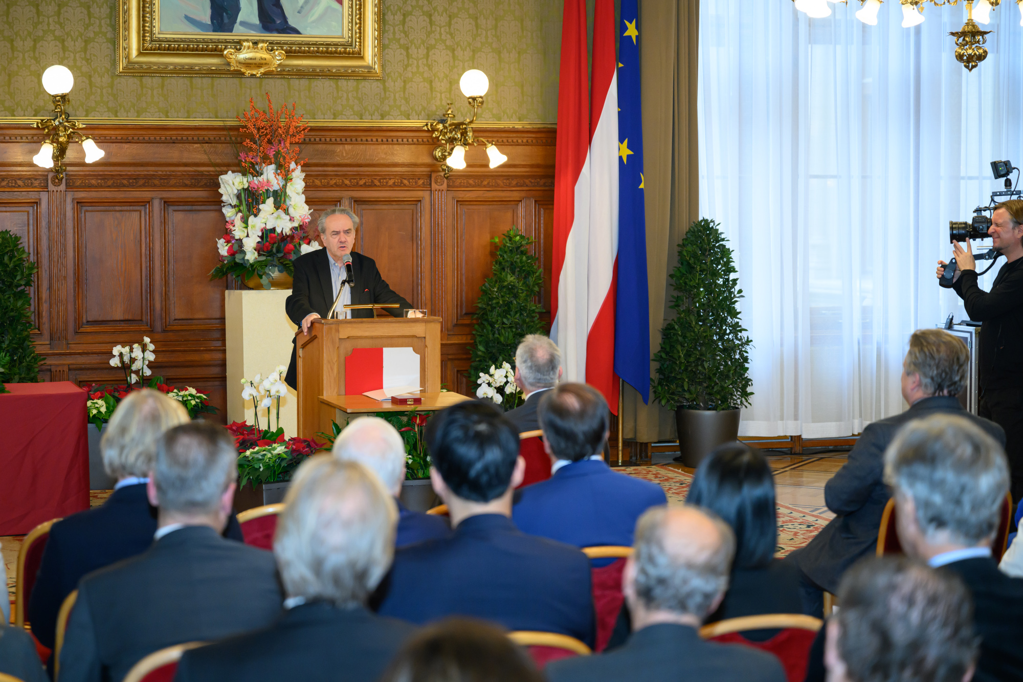 In einer würdigen und doch lockeren, amüsanten und kontemplativen Feierstunde zeichnete Wiens Bürgermeister Verleger Christian W. Mucha mit dem Goldenen Verdienstzeichen der Stadt aus.