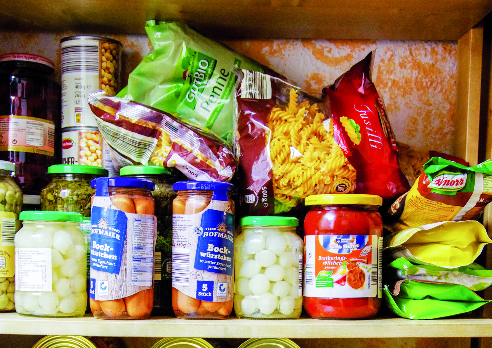 Eigene Essgewohnheiten: Man sollte nichts bevorraten, was einem nicht schmeckt. Wenn die Kinder morgens nur Marmelade oder Nutella auf dem Brot essen, hat es keinen Sinn, massenhaft Dosenwurst zu kaufen, und als Vegetarier bevorratet man kein Corned Beef.